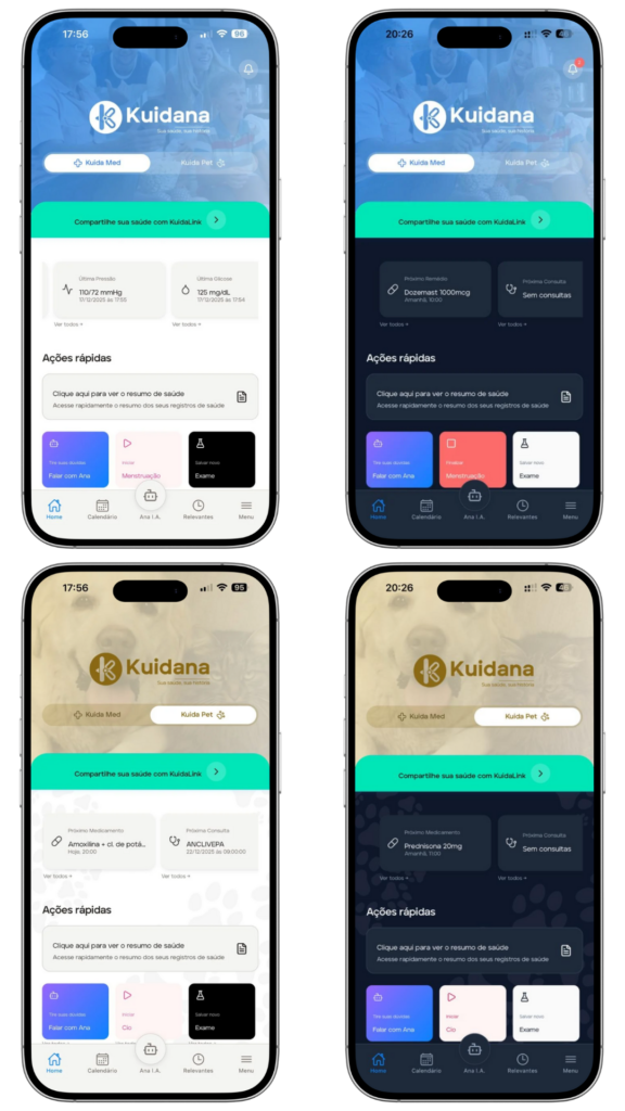 Hoje, quando levo minha mãe e a Diana ao médico, eu abro o app ou compartilho o Kuidalink e tenho tudo. Cada exame. Cada medicação. Cada alergia. Organizado. Seguro. Acessível.